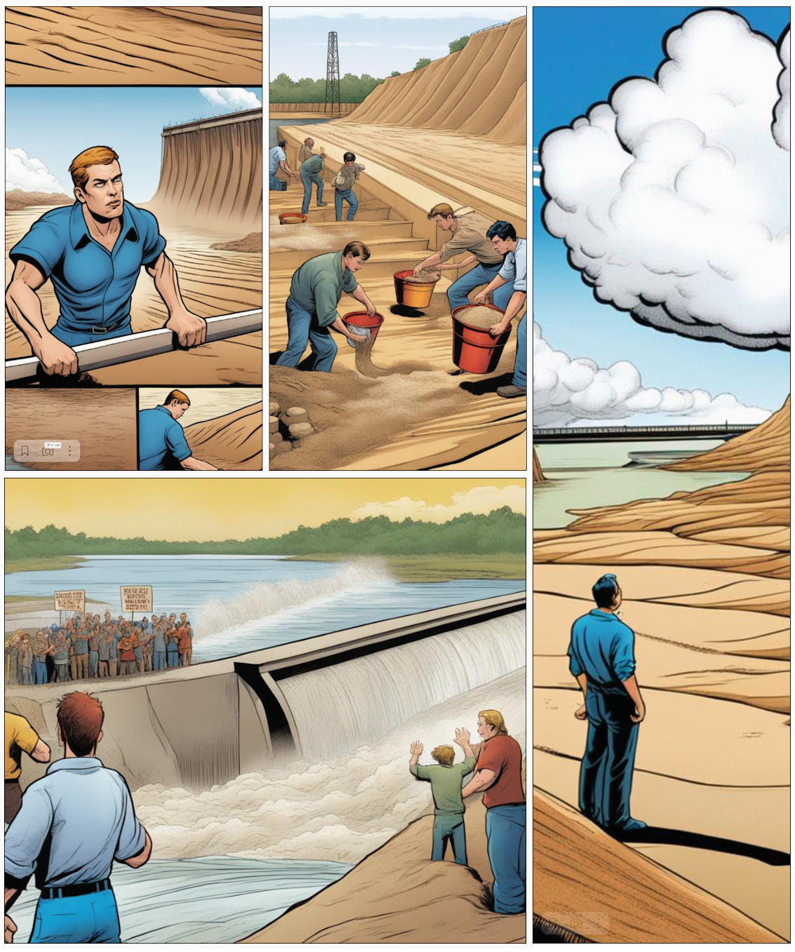 Поздним вечером, когда солнце уже село, вместе видели свою работу, как наша часть дамбы, воссозданная нашими усилиями, воодушевляет продолжать. Все были изнурены, но в сердцах горел огонь решимости – мы знали, что это еще не конец, и будем стоять вместе, чтобы защитить наш уголок.